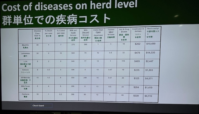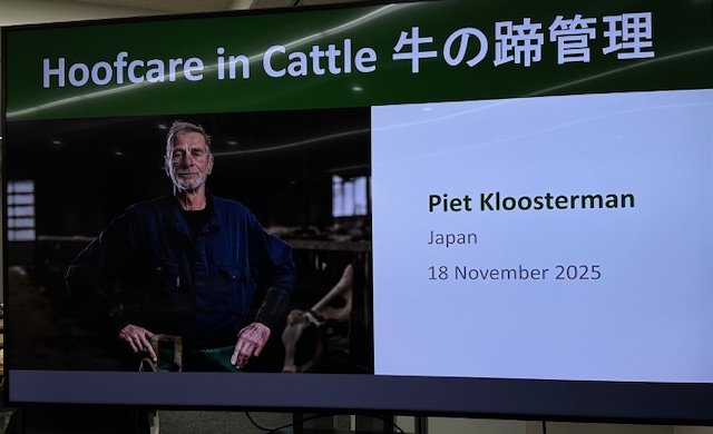 Piet さんの講演は削蹄と酪農家の毎日の蹄管理がいかに大切であるか、経済的損失がいかに大きいかを丁寧に、数字を含めて示していただけました。最新の情報では、乳房炎よりも経済損失が大きくなっています。