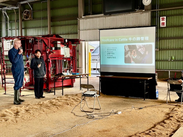 2日目は酪農家さん、酪農関係者も加わり、ピートさんとIntora Hoof-fitの護蹄セミナーになりました。